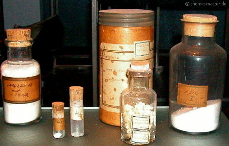 | Entdeckung | Der dänische Physiker Niels Bohr sagte voraus, dass das noch zu entdeckende Element 72 in seiner Struktur und seinen chemischen Eigenschaften dem Zirconium stark ähneln werde. Auf Grund dieser Voraussage wurde das Element 1923 von dem ungarischen Chemiker George de Hevesy und dem holländischen Physiker Dirk Coster am Bohr'schen Institut in Kopenhagen röntgenspektroskopisch in Zirconium-Mineralen entdeckt.![]() Hafniumhaltige Zirconium-Salze, in denen Coster und de Hevesy das Hafnium entdeckten. |